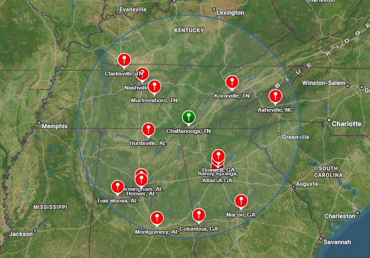 ✅ Service Area Map (200-mile radius)